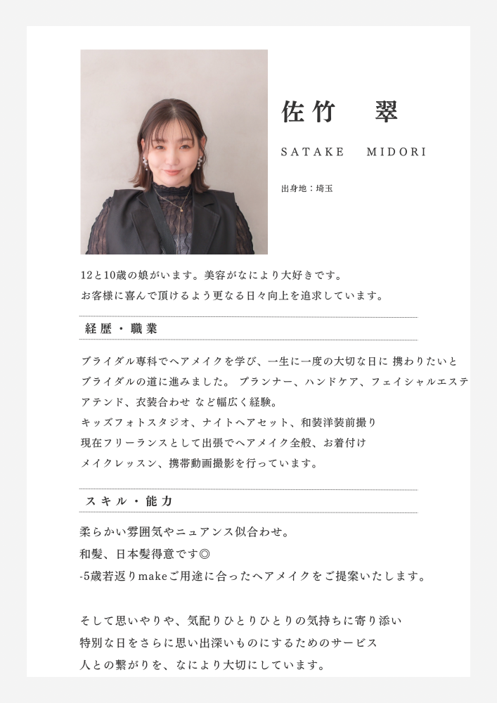 ブライダルやお子様の晴れの日、